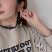ゴールドリングとつぶつぶパーツを合わせたピアスです。左右アシンメトリーのデザインにし、モードでシックな仕上がりに。