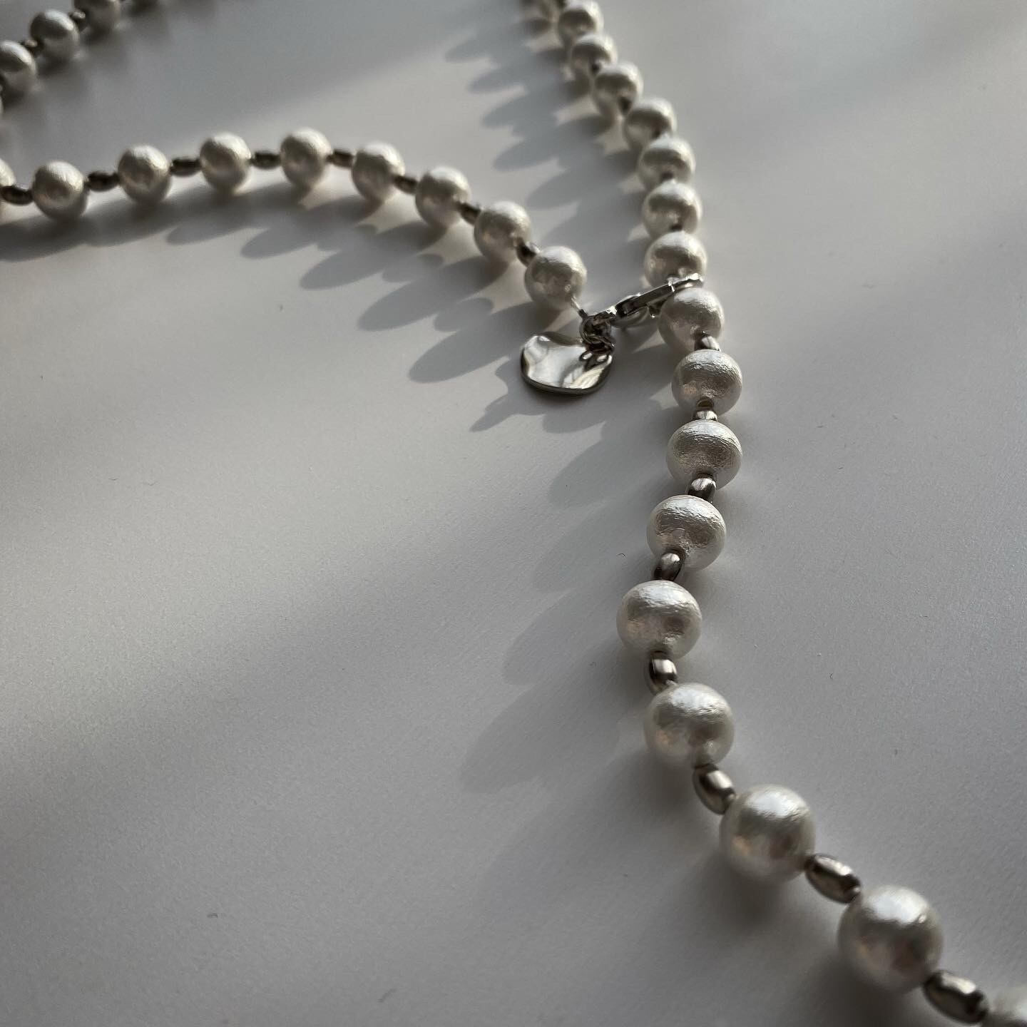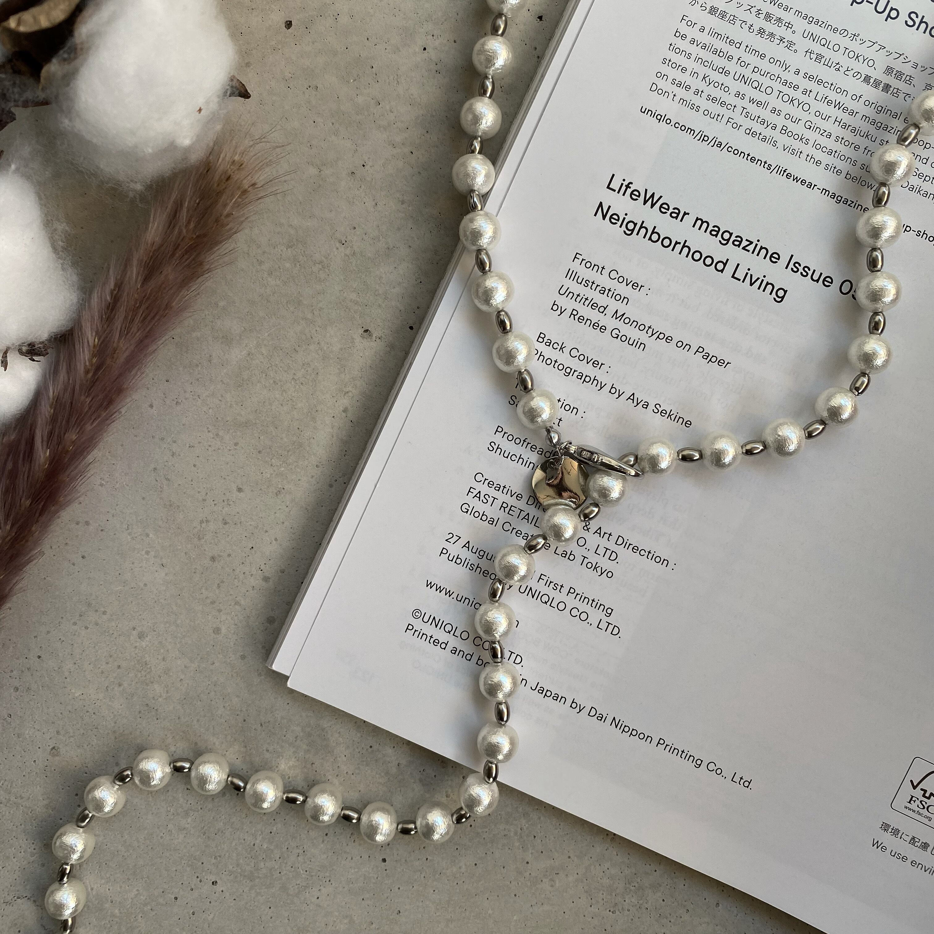 コットンパール(8㎜)とチタン製なつめ型ビーズを合わせたネックレスです。